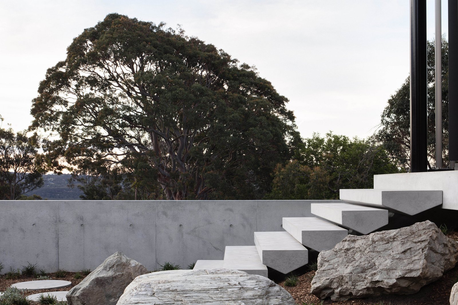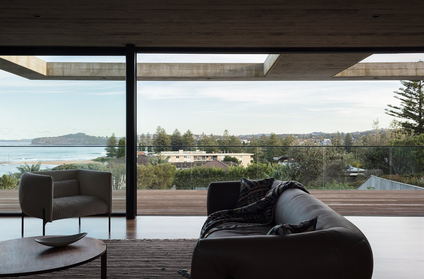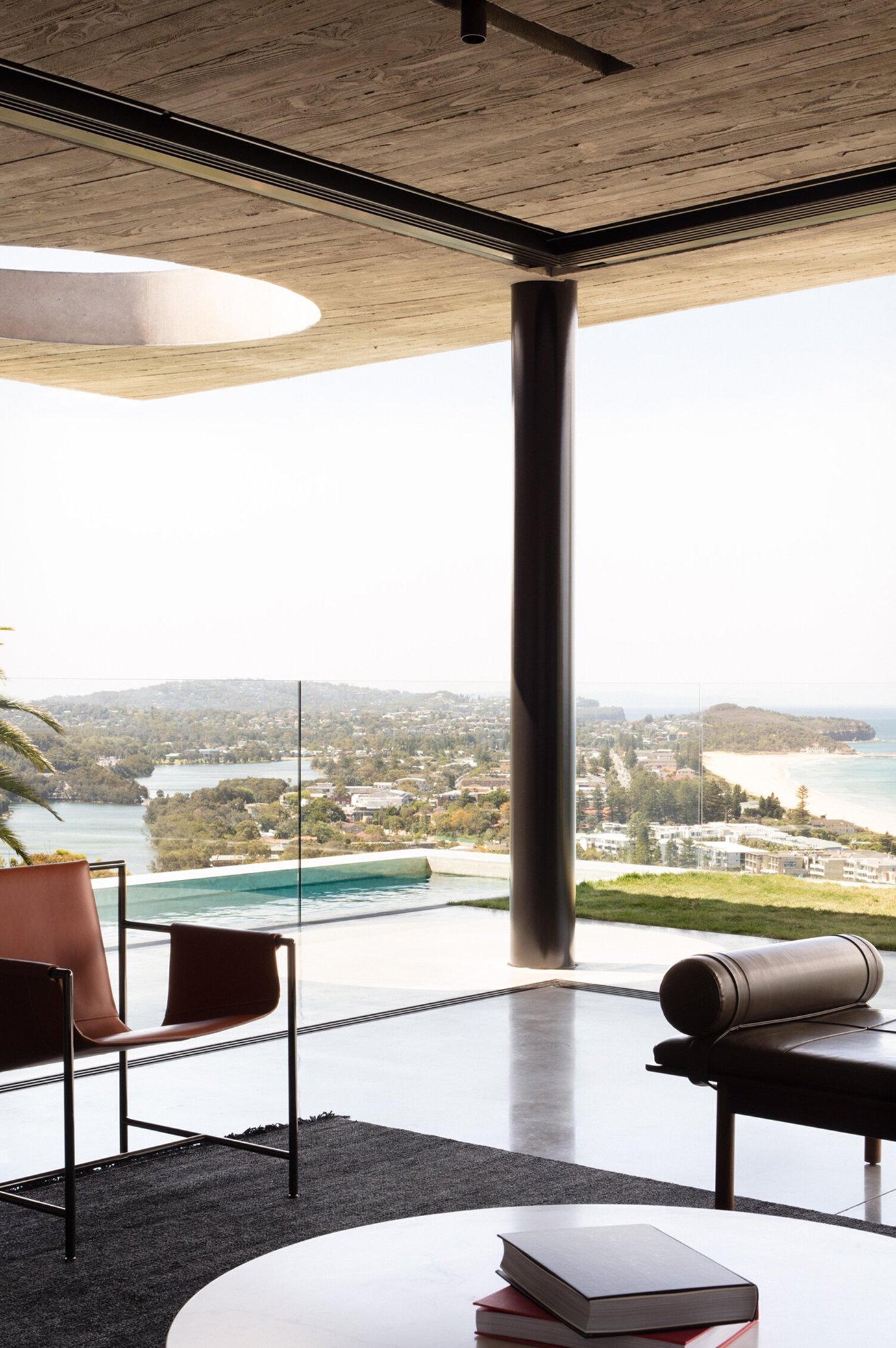 Perched high on Collaroy Plateau’s escarpment, Eagle’s Nest sits unencumbered by neighbours to enjoy stunning 270 degree views of the Pacific Ocean, Narrabeen and Collaroy beaches, with Narrabeen lagoon, Bilgola Plateau and Pittwater’s Western Foreshores in the periphery. The top floor plate is rotated to north to harness optimum solar access and the framing of views for an intimate experience that juxtaposes the expanse of the main level’s floor to ceiling glazing.